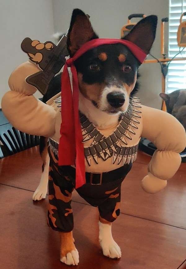 Add the red headband and you’ve got instant tough-guy charm that’s equal parts fierce and funny. Perfect for Halloween, photo ops, or any day you want your dog to look like the ultimate canine commando.