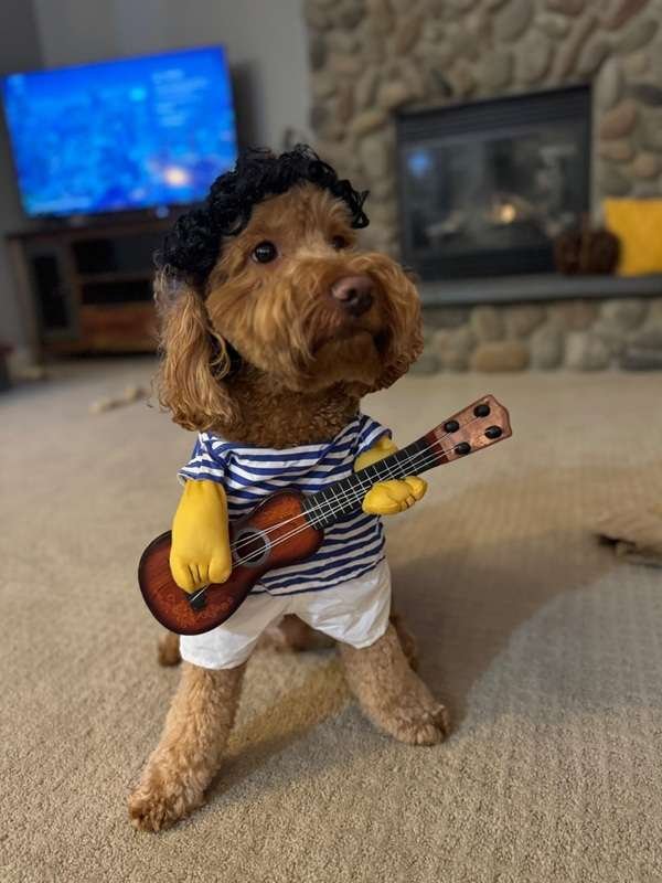 Whether they’re strumming their way through the living room or posing for the camera, your dog will look like they’re ready to drop their debut album. Perfect for music lovers, costume parties, or just getting endless laughs from friends and family.